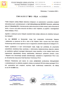 Świadectwo nr 23/2025 – dla hali lekkoatletycznej,